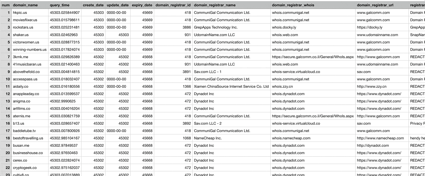 Updated daily and fresh from registrars